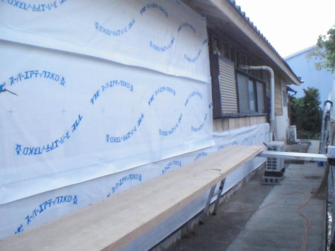 既存の古い板壁を剥がし構造補強・断熱材入れ