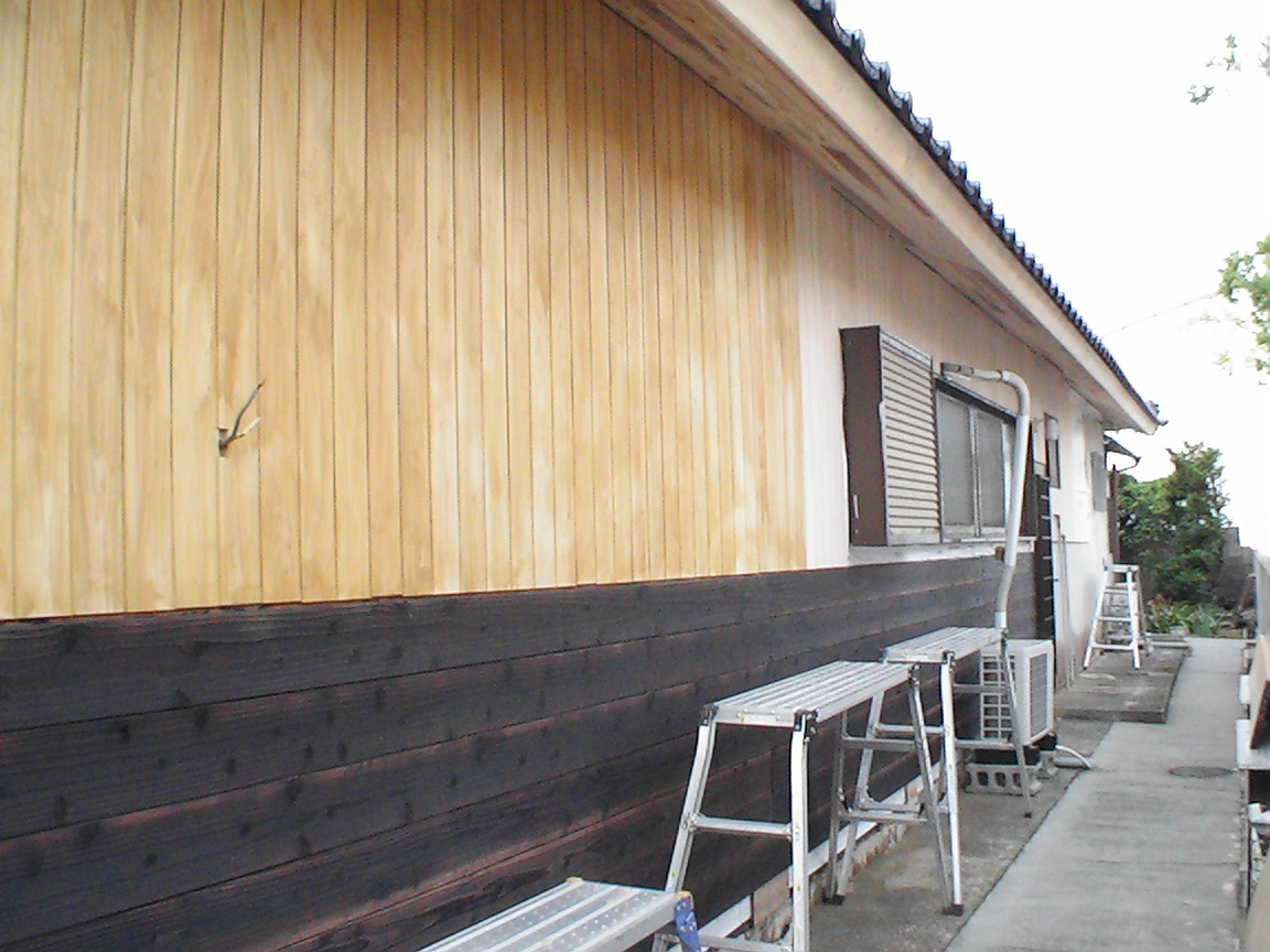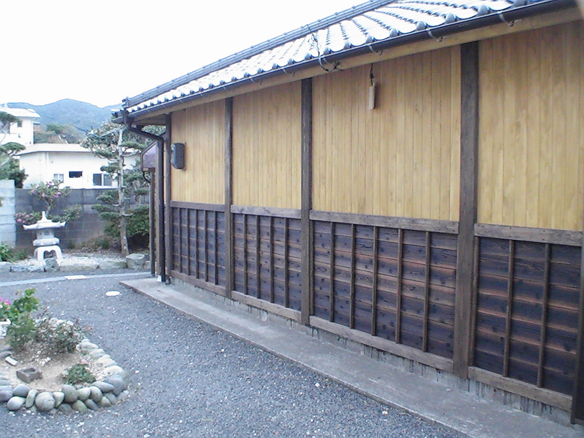 下地板張り(原木桧)+焼き杉板張り