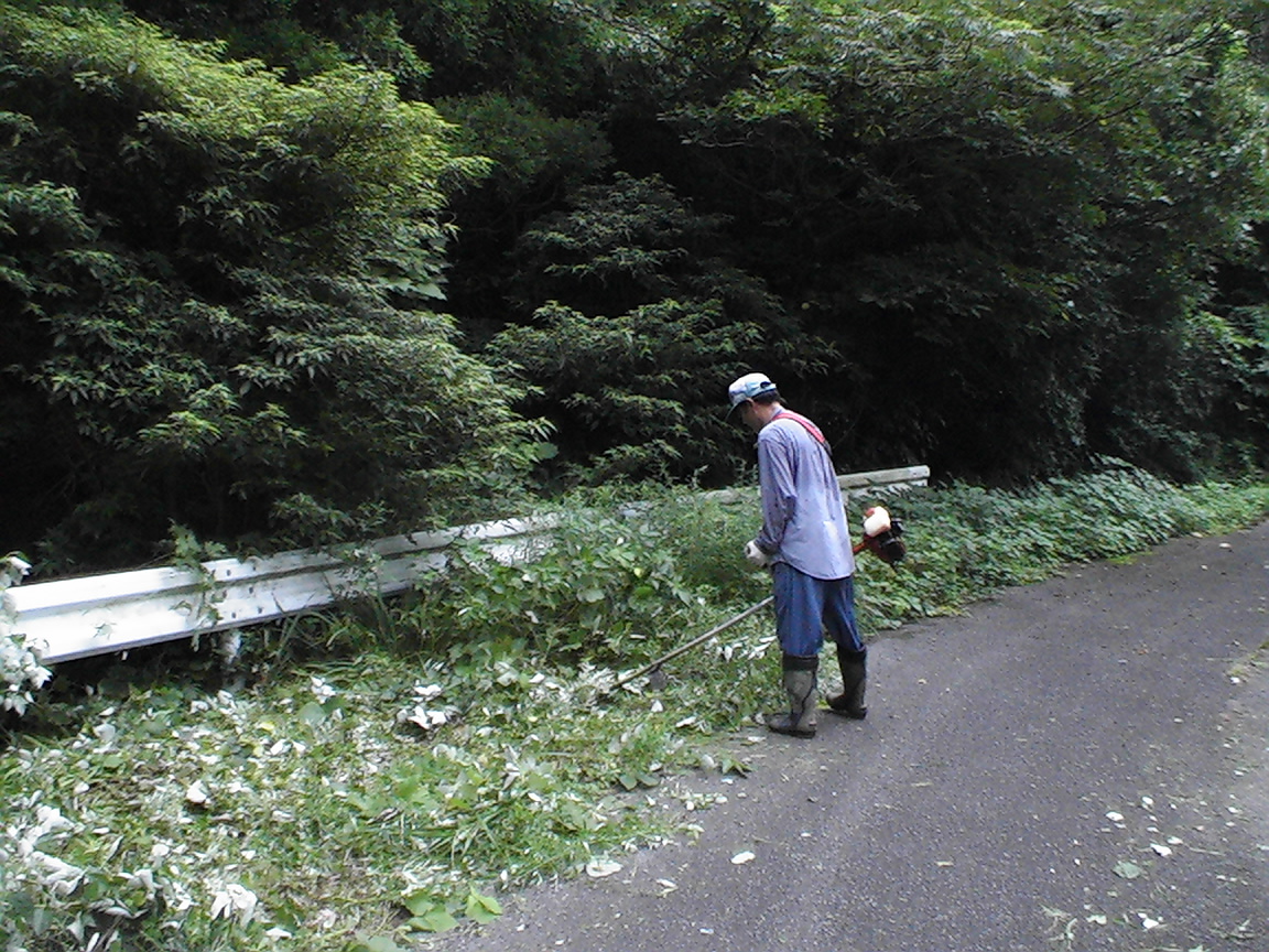 背丈ほど伸びた雑草の刈取り作業