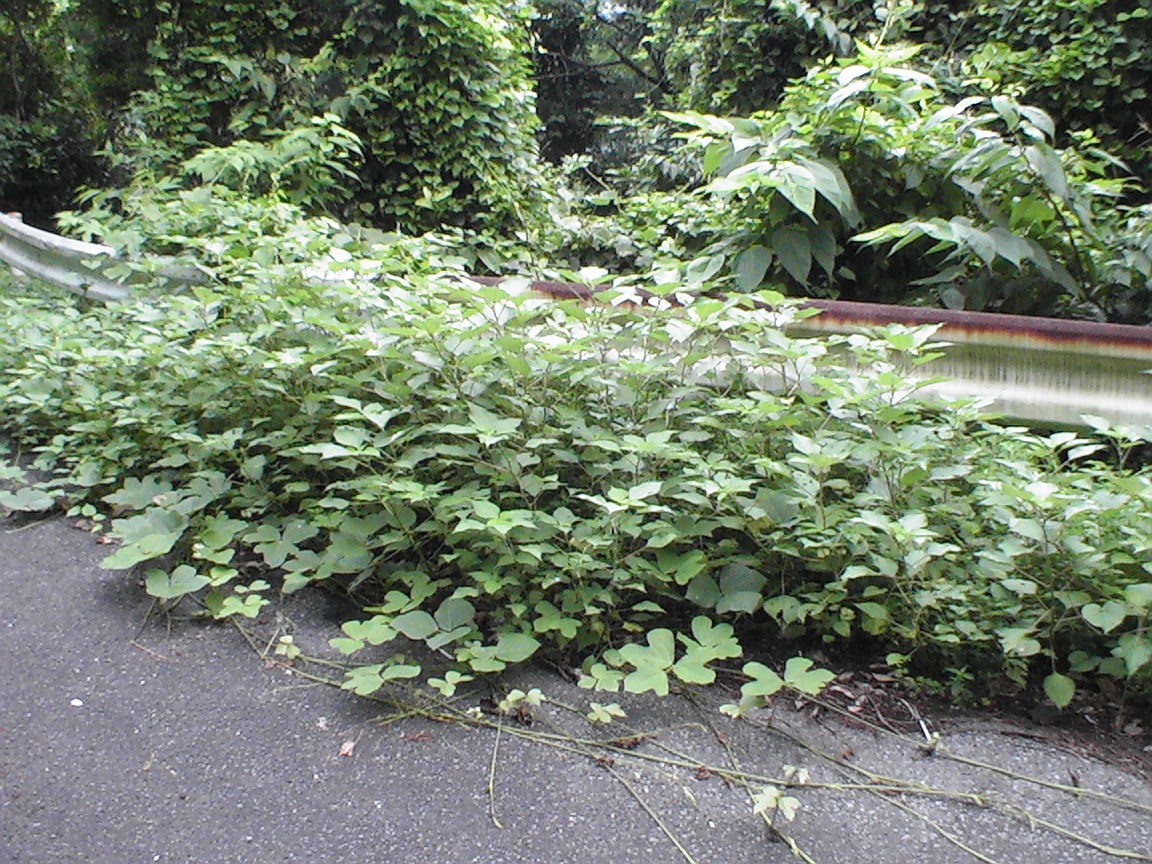 道路に無増にはみ出た葛蔓